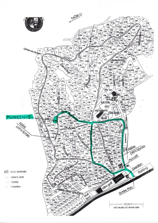 Voici le plan du camping, notre mobil home est sur l’emplacement F102