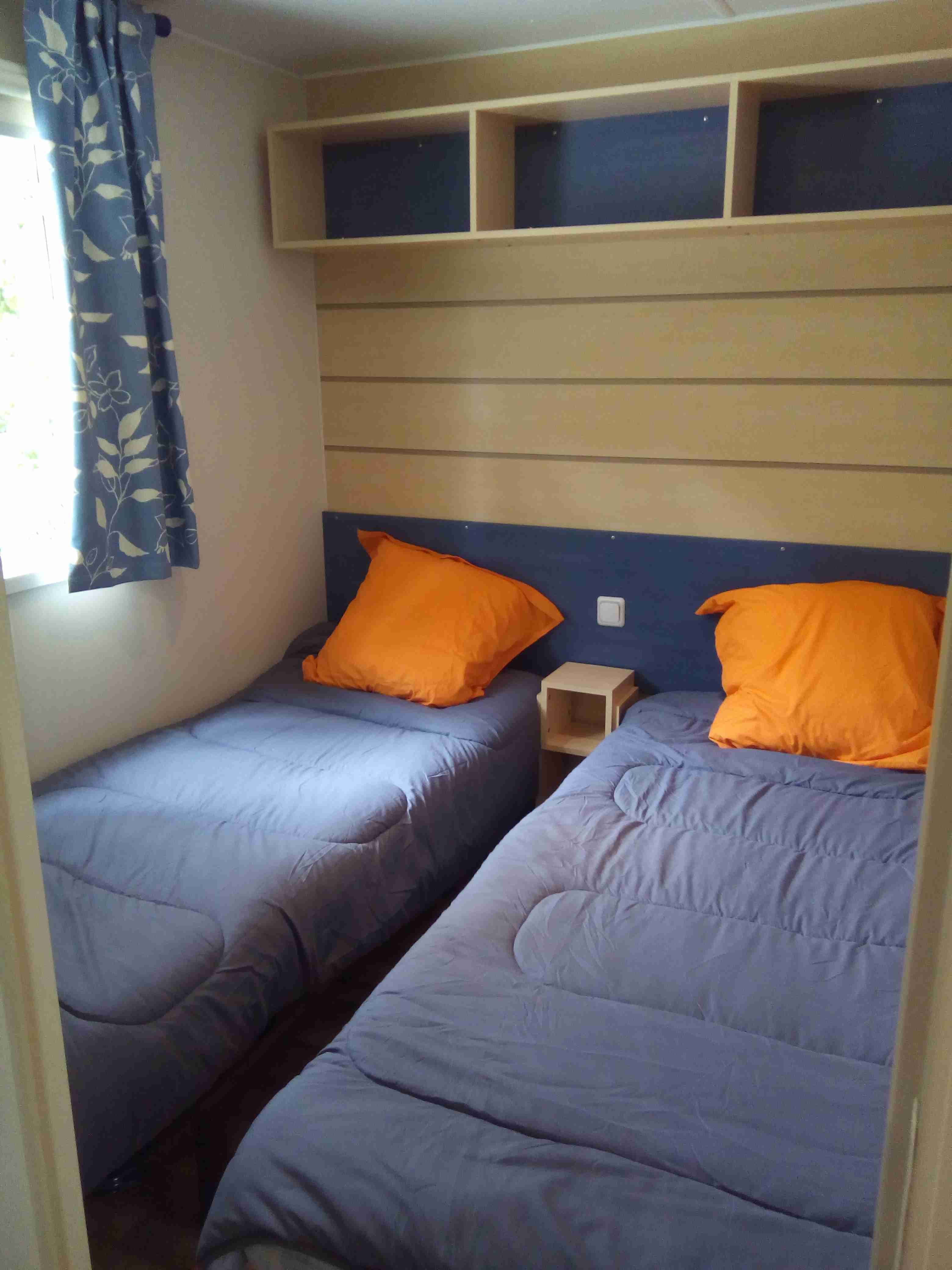 - 2 chambres : 1 chambre avec un lit double et 1 chambre avec deux lits simples. Les chambres possèdent toutes deux des armoires. (Couvertures et oreillers fournis)