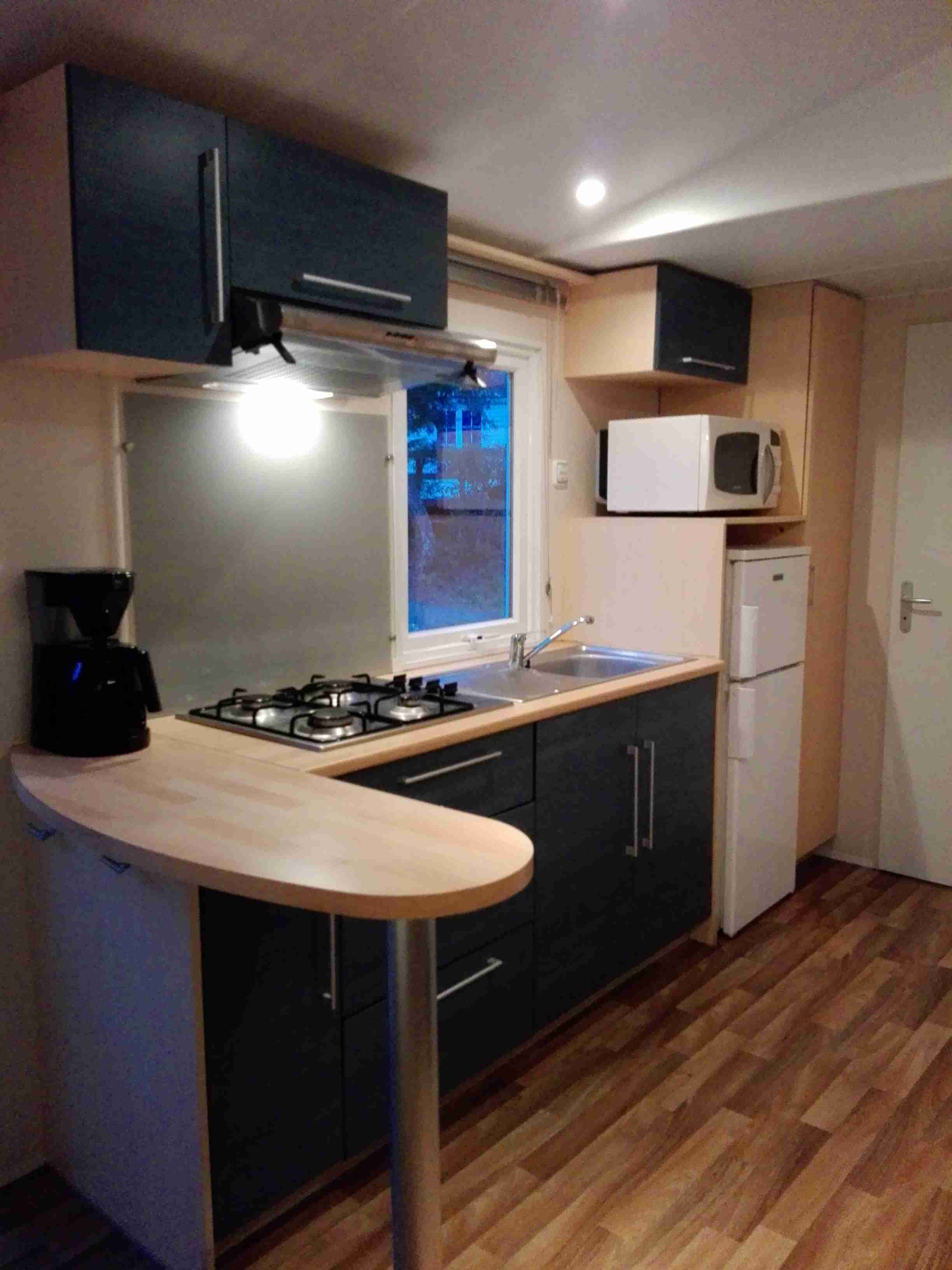 Pour votre bien-être, le mobil home est entièrement équipé et meublé, il se compose :